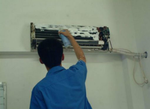 | 苏州空调维修师傅给苏州用户上门维修清洗空调。 |